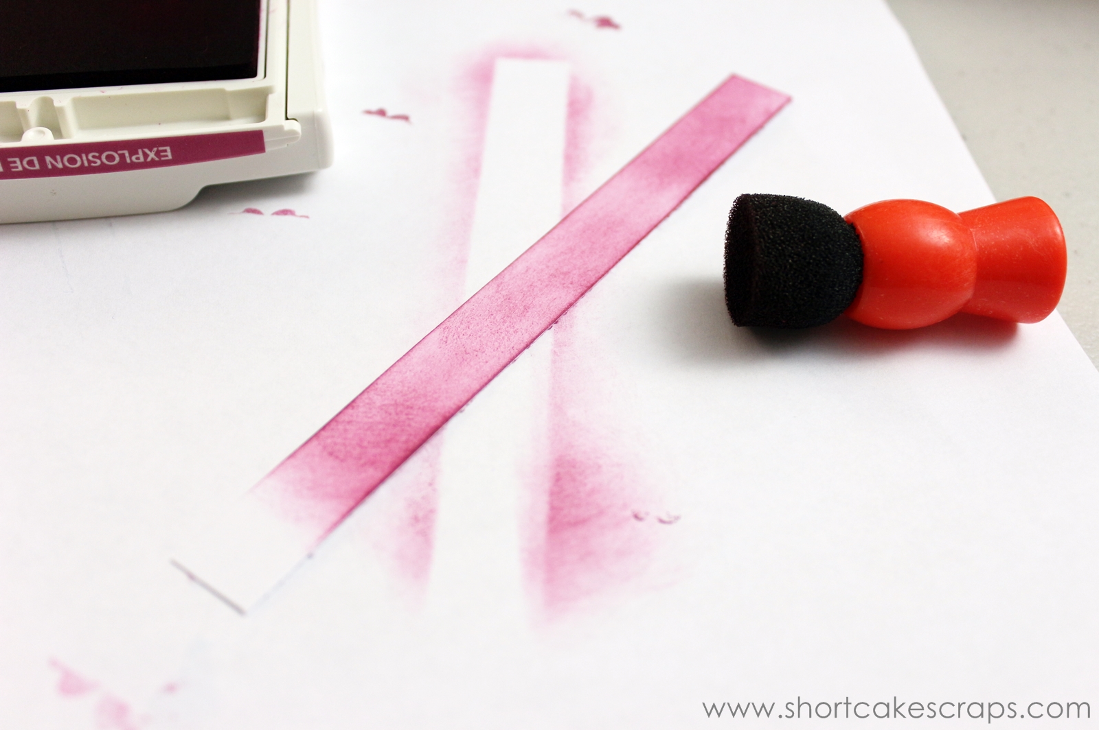Another great way to use an ink pad is with a dauber tool that picks up some of the color so you can apply it to a surface in a subtle way. In this example I didn’t have cardstock in the same shade so I colored a piece of white paper using a dauber and the berry burst ink pad to create something that would come close to it.