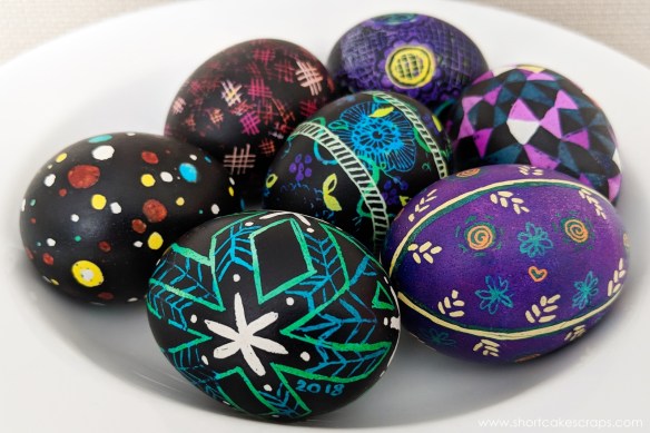 You’ll notice that most of my eggs have a black background. You don’t have to do it like that – you can totally do different colors or even just stick to one (I want to try that next year). I love the flexibility of this craft and how you can make it as simple or complex as you want to.